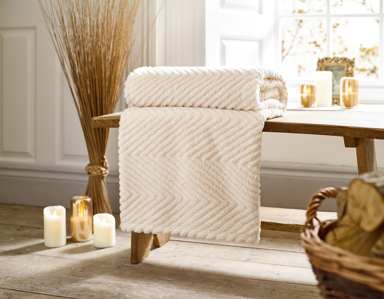 Add warmth and contemporary texture to your home with the Hemsworth Chevron Fleece Throw Blanket from Deyongs. Designed with a beautifully soft-touch fleece finish and a striking chevron pattern, this cosy throw brings both comfort and visual interest to any space. Available in Cream, Grey, Blush, and Stone.
