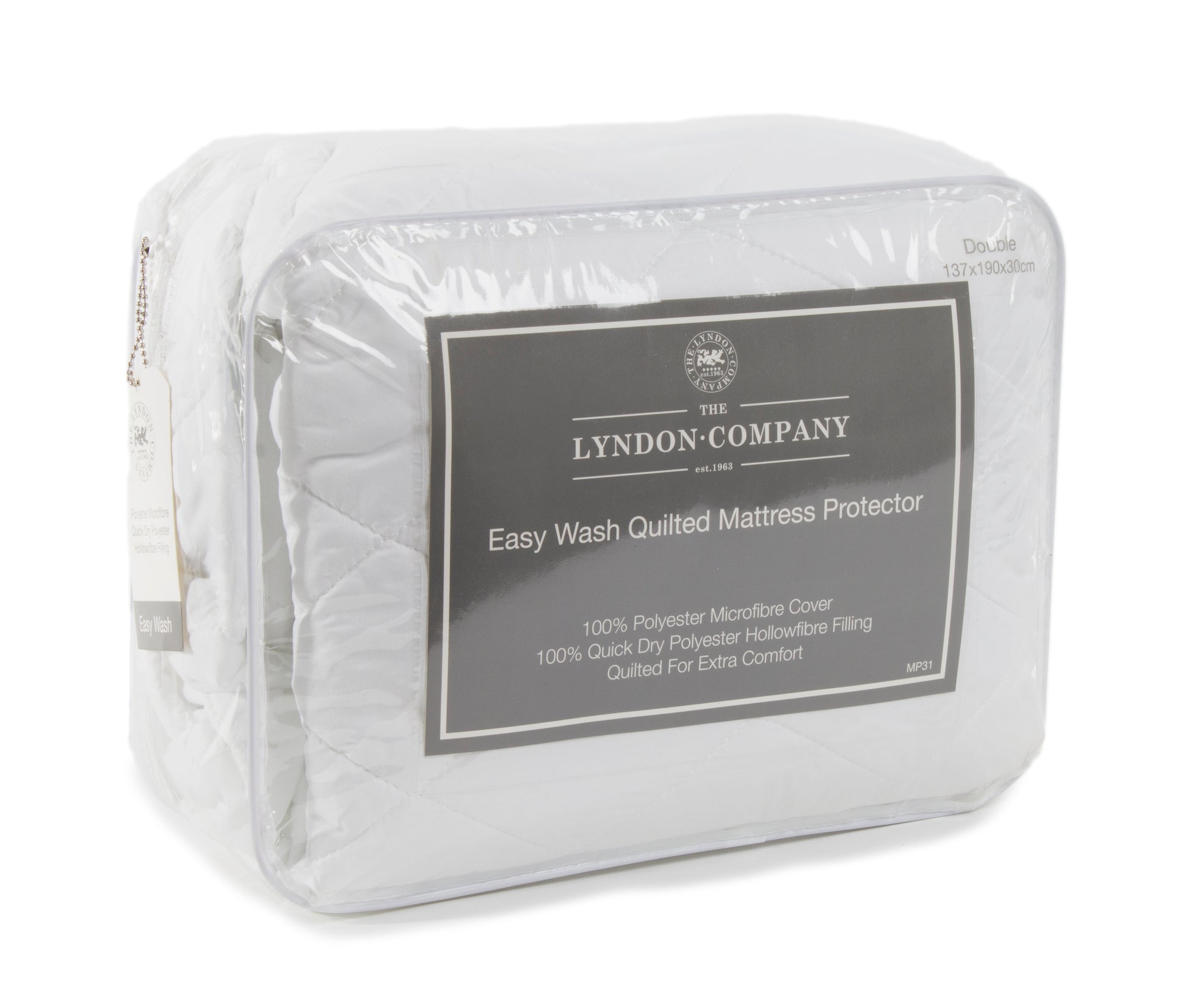 Enjoy long-lasting comfort and protection with The Lyndon Company Easy Wash Quilted Mattress Protector. Designed for everyday use, this soft-touch protector features a microfibre top layer and quilted hollowfibre filling for added softness. The diamond stitch quilting keeps the filling evenly in place, while the smooth microfibre skirt ensures a secure fit around your mattress.