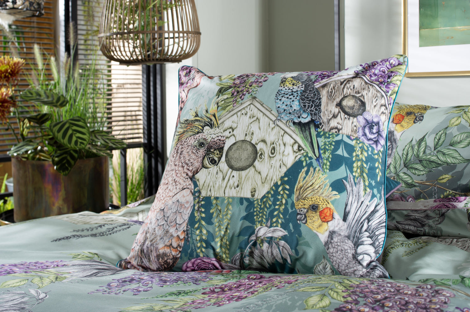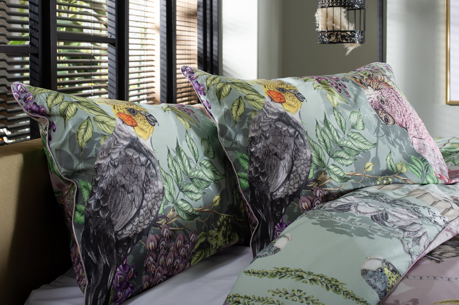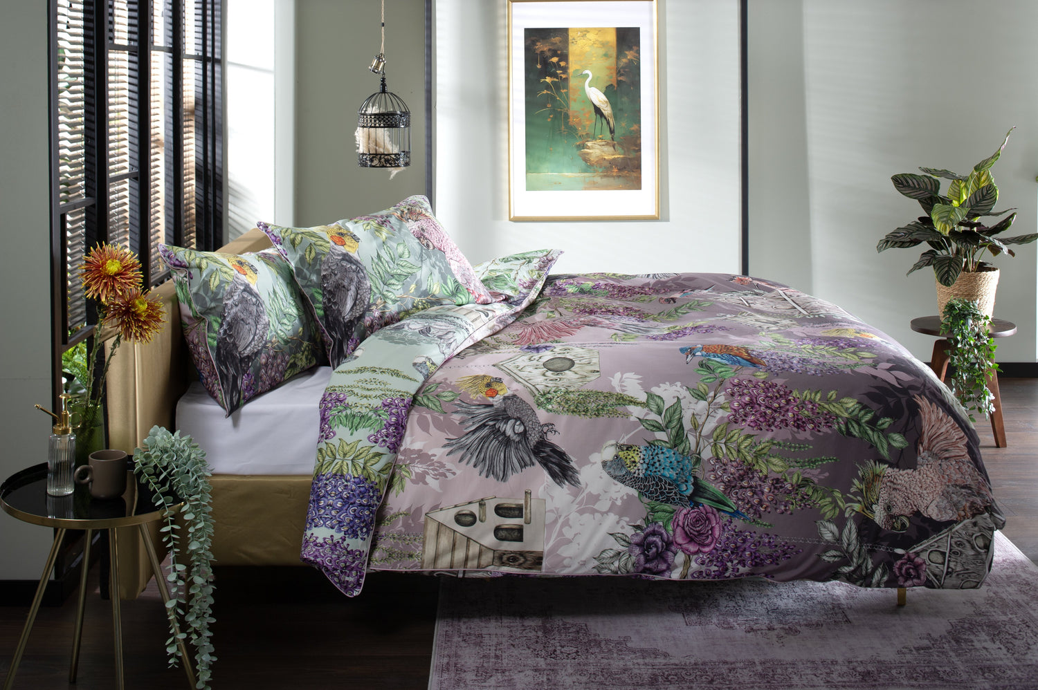Available in Double, King, and Super King sizes, the Bird Sanctuary duvet set includes a duvet cover and matching pillowcases. The richly detailed design features exotic birds perched among tropical foliage and blooming flowers, creating a serene, sanctuary-like atmosphere in your bedroom. Soft and comfortable for year-round use.