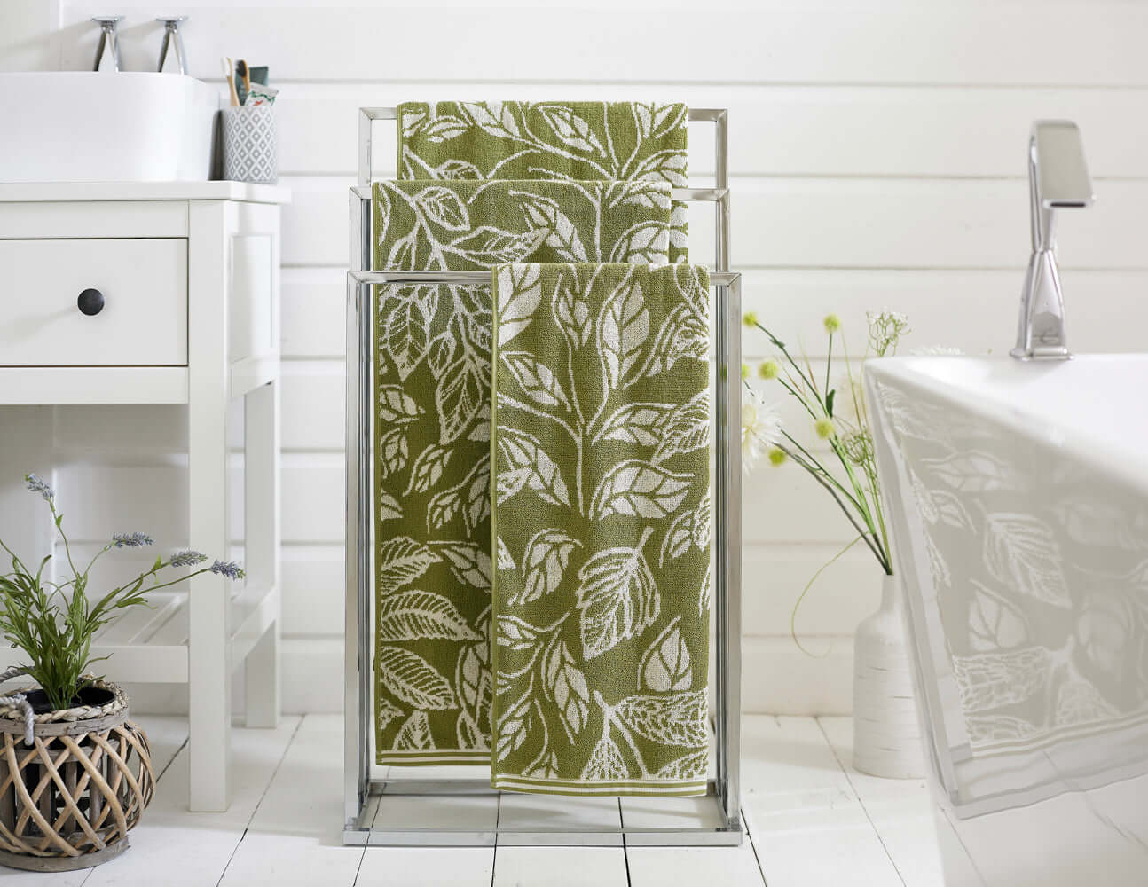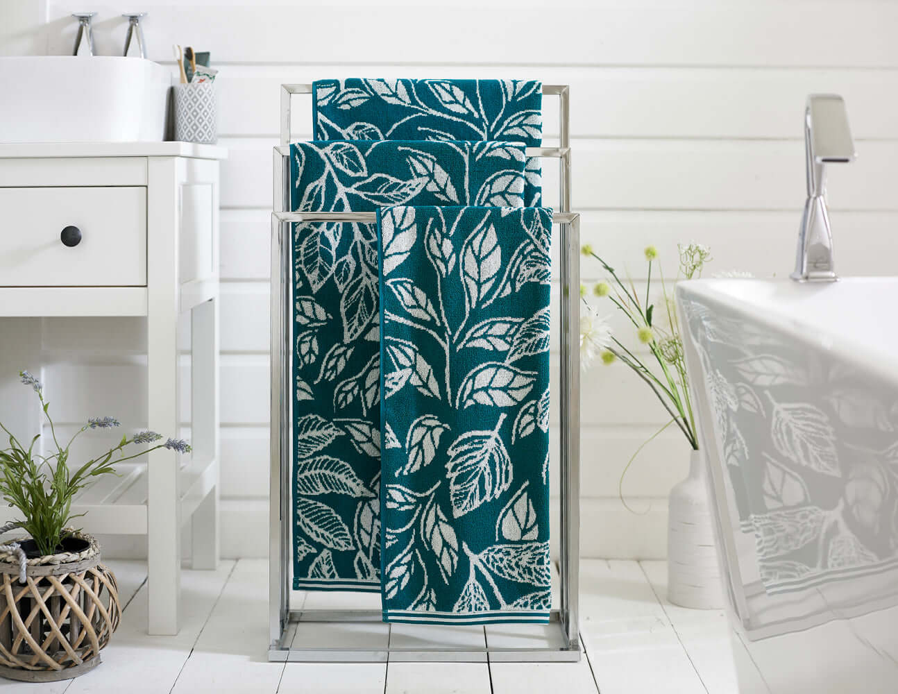Available in three vibrant colours – Teal, Olive Green, and Grey – the Mixed Leaves collection is perfect for adding colour and style to your bathroom décor. Each towel is crafted with a detailed jacquard weave for a sophisticated look and feel.