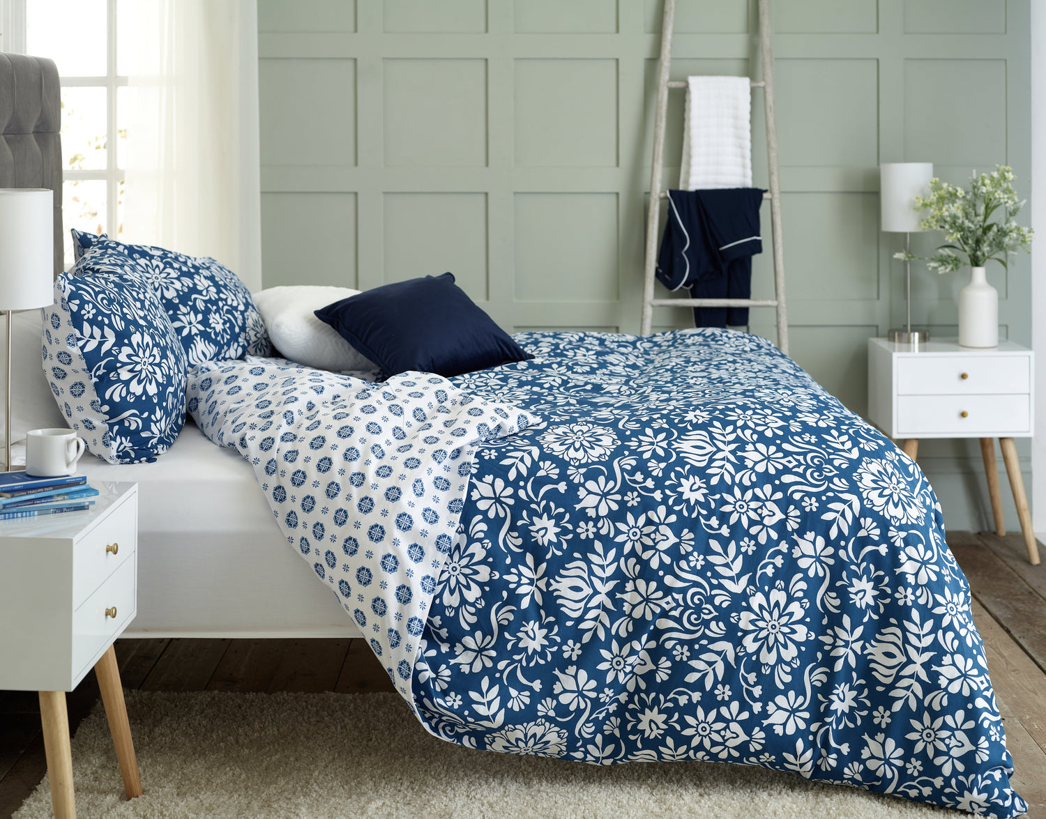 Transform your bedroom into a stylish retreat with the Ornamental Tile Floral Duvet Set by Deyongs. This eye-catching bedding features an intricate ornamental tile pattern infused with delicate floral motifs in rich shades of blue and white — combining classic elegance with a contemporary edge for a truly striking bedroom centrepiece.