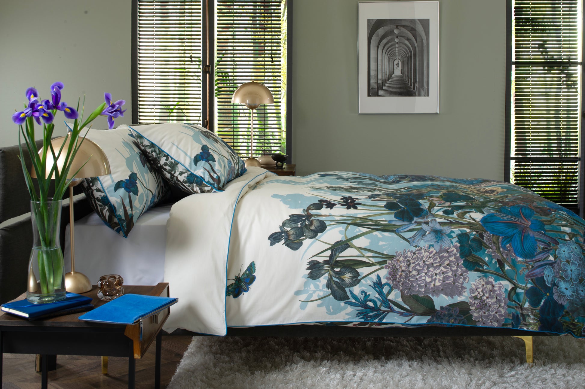 Bring refined elegance to your bedroom with the Tivoli Blue Cotton Duvet Set from The Lyndon Company. Digitally printed on smooth 180 thread count cotton, this design features intricate detailing and a clean piped edge finish—blending classic craftsmanship with modern precision.